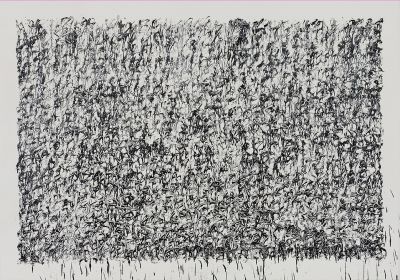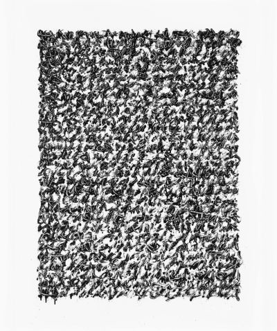 Essentiellement basé sur le trait, son travail ne cherche pas à être parfait mais plutôt spontané. C'est l'état dans lequel il est qui va définir sa densité et sa rigueur. Son rythme cardiaque actionne son bras à la manière d'un métronome, il ne doit pas essayer de contrôler ce flux mais juste de comprendre la composition qu'il fait apparaître en équilibre entre son conscient et son inconscient. Il compose sa musique et ses toiles d'une manière spontanée.