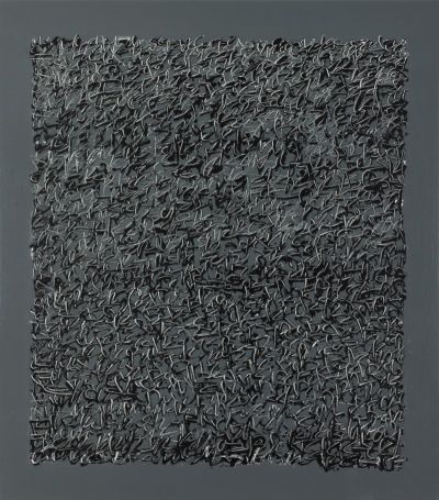 Mes recherches, depuis que je travaille en atelier, vont vers l'abstraction, j'y trouve plus d'émotion. Dans la rue, c'est différent. L'impact des lettres a une autre résonance. Mais les frontières restent floues pour moi. A quel moment une lettre devient-elle forme abstraite ? C'est là que je m'amuse à trouver les limites en y intégrant de nouvelles inspirations de mes voyages, revenant plusieurs fois sur mes traits, grattant la toile, créant volume, profondeur et vibration picturale.