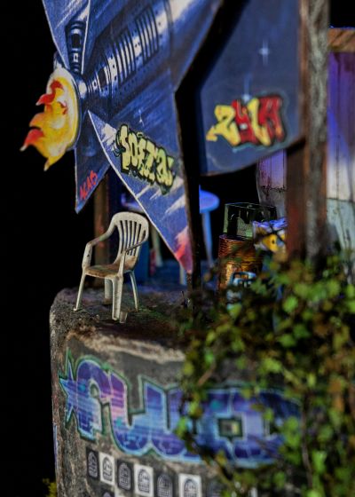 Depuis 2016, je construis mon propre univers en miniature alliant le volume et la mise en scène. L’habitat et la survivance sont deux éléments centraux de ma démarche. Autodidacte dans le monde de la sculpture et de la maquette, j’utilise beaucoup d’éléments de récupération. J’aime le principe de seconde vie et de recyclage par l’art pour la création. Le détail, la lecture et le sens sont directement lié à mes travaux photographiques antérieurs.