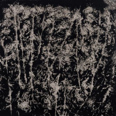 In addition to the projection and dripping techniques that give his painting its uniqueness, Pierre-Luc Poujol also uses his own organic and unconventional tools in his creations: tree branches, plant ashes, charcoal, allowing him a more intimate connection with his subject.