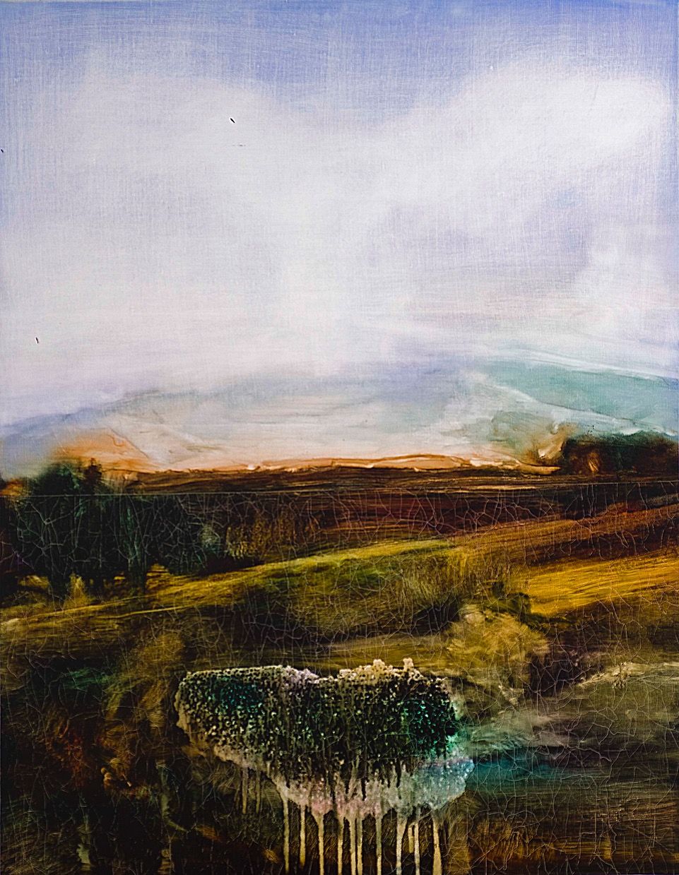 Depuis 2017, et après des années d’échecs, de rejets et d’errances, Paul de Pignol trouve un langage pictural complémentaire à ses recherches. Son exposition Né du limon chez la galerie Loo & Lou en 2019 est la résultante de cette quête. Principalement orientée sur le thème du paysage, influencé par la proximité de son atelier à la forêt de Fontainebleau, l’artiste ne s’écarte pas pour autant de ses obsessions antérieures. L’idée que toute vie puisse naître de la pourriture et de la putréfaction le hante et le fascine toujours. Il en obtient des paysages organiques mouvants. On y sent la tourbe et l’humus. On est proche du Golem. Cette exposition avait réuni donc pour la première fois des dessins, des sculptures et des toiles, ce qui représente pour l’artiste, tant au niveau du sujet qu’il traite que par la multiplicité des médiums utilisés, un renouveau jouissif et fertile.