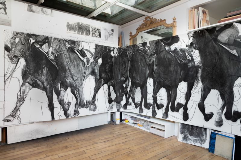 “Joël Person was born in 1962 in Abidjan, Ivory Coast and he currently lives and works in Paris. After graduating from the École nationale supérieure des Beaux-Arts de Paris, he devoted himself to portraiture before focusing drawing horses and erotic poses. He combines the classical purity of the line with a rare intensity of expression in his paintings and drawings. Person knows the traps of virtuosity. He looks for the moment where a nervous influx or spurt of life might change the careful framework of a figure.