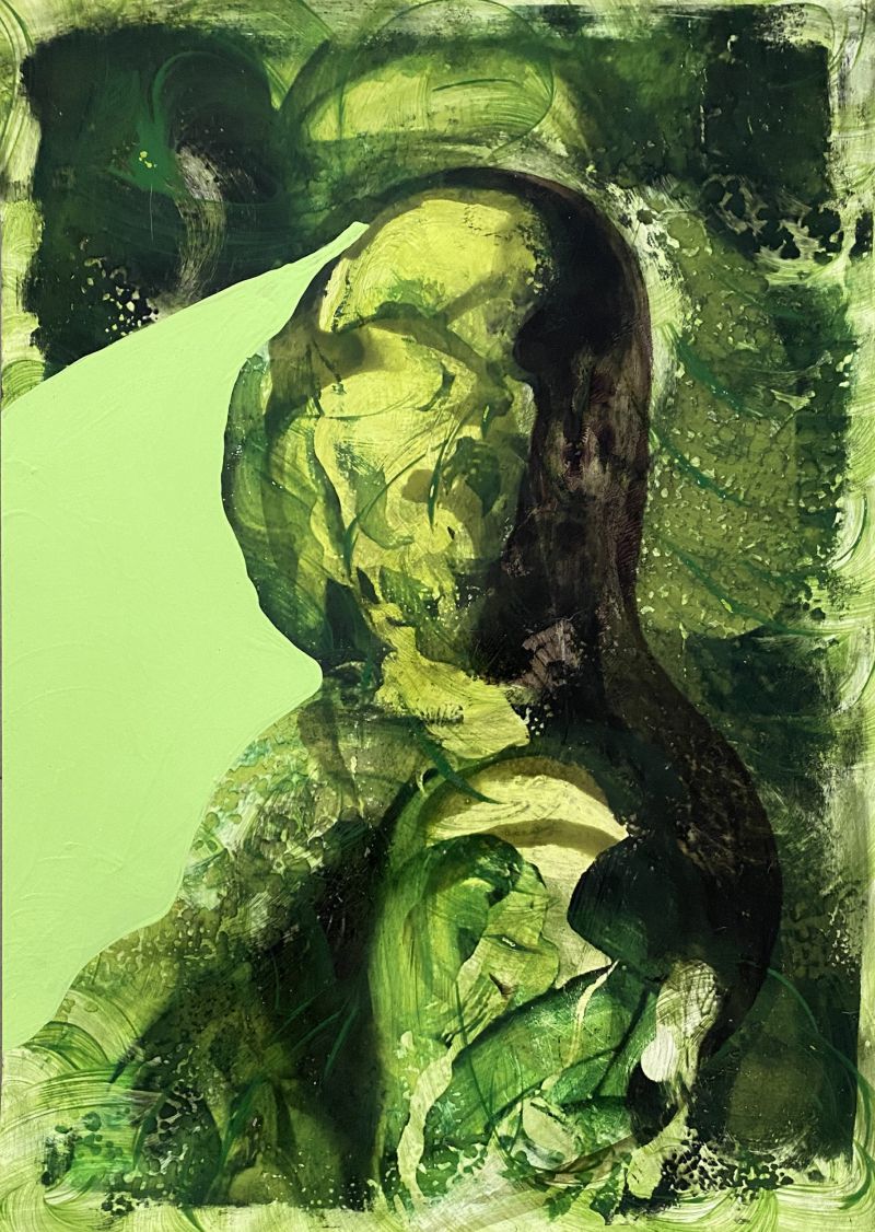 Human figures suspended in the void haunt his canvases inviting worrying feelings and a certain nostalgia. These are depersonalized figures, devoid of identity, which remind us of Francis Bacon’s characters. The combination of simplified forms and subtle nuances in colors allows him to give an intemporal aspect to his paintings, where the material is the main subject.