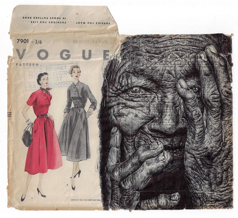 With the humble Bic Biro as his tool of choice, London-based Powell creates intricate portraits on antique documents. His favoured subjects are elderly, a natural fit for the paper he uses and his detailed style: post marks and typography merge with pen strokes to create a captivating whole.