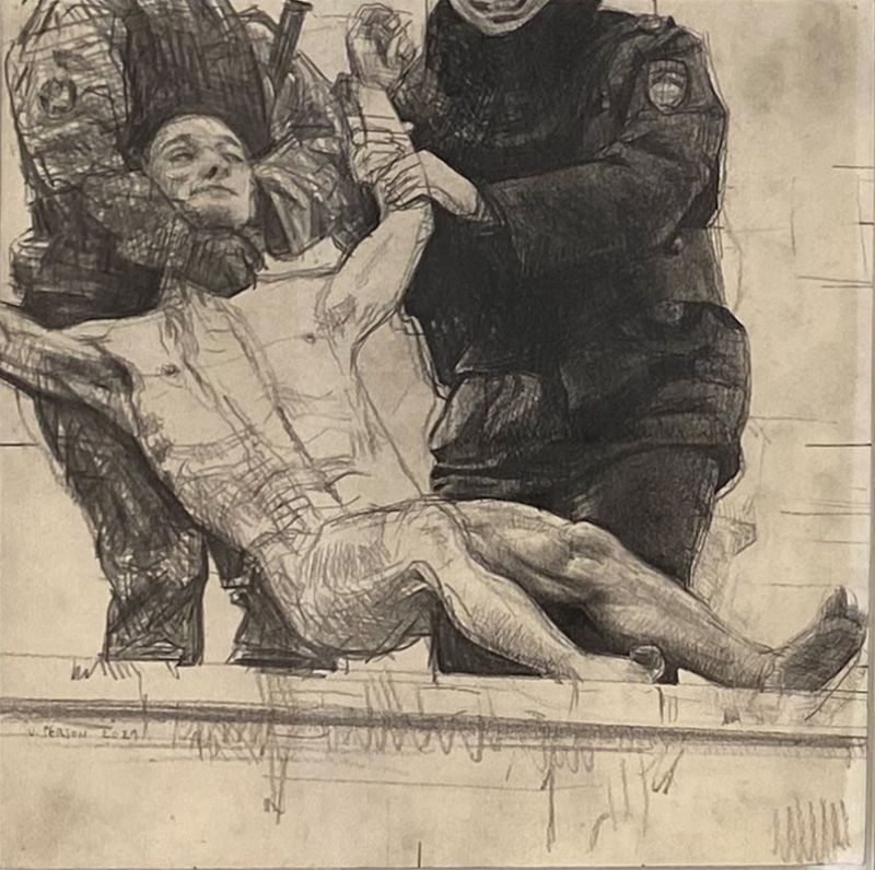 « Joël Person est né en 1962 à Abidjan, en Côte d’Ivoire. Peintre et dessinateur, il allie dans ses compositions la pureté quasi classique du trait et une intensité rare de l’expression. Il compte de nombreuses expositions personnelles et collectives en France et en Chine. Il vit à Paris. Diplomé des Beaux-Arts de Paris. Il se consacre d’abord au portrait avant de privilégier les thèmes du cheval et les poses érotiques. Joël Person connaît les pièges de la virtuosité. Il cherche l’instant où l’influx nerveux, le jaillissement du vivant vont subvertir le cadre soigné de la figuration. Saturé d’énergie, le corps du cheval lui donne, depuis vingt ans, cette expérience du débordement et de la submersion. Mais Person est aussi un dessinateur de la figure humaine. Pour déjouer sa propre technique figurative, il guette le point de rupture dans le rituel statique de la pose. Cet instant où le modèle se cabre et fuit dans un ailleurs, il le capte partout et nulle part : une contraction du front, une torsion de l’épaule, une inclinaison du visage. Person maintient l’illusion réaliste de la peinture. La vie intense de ses portraits ne naît pas d’un style expressionniste, mais, dans une tension anxieuse, elle surgit de la confrontation de l’artiste à ce « soi » de l’autre, cette soudaine prise de liberté, cette solitude a l’état brut, qui tout à coup, très brièvement, surgit entre la surface du corps et la tension du système nerveux. »