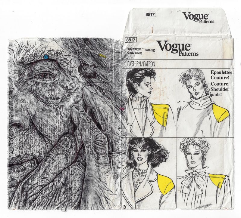 Dessin au stylo à bille sur une ancienne enveloppe Vogue
