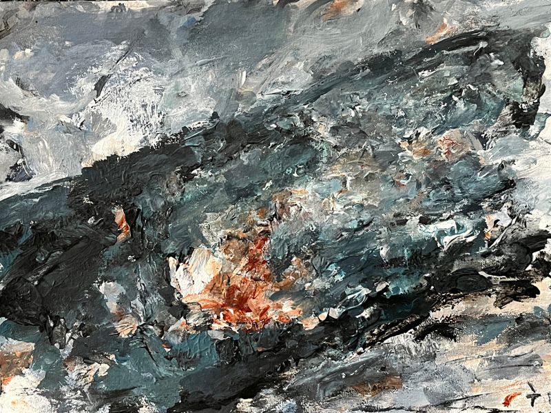 Le corps, ses espaces du dedans, ses interactions avec l’extérieur, avec la nature, avec l’autre, ses métamorphoses, ses mouvements, ses élans et ses contradictions cherchent l’expression dans sa peinture, au-delà de tout signe représentatif d’une époque.