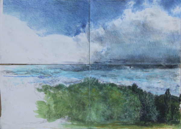 entre ciel et terre. l’oeil de dieu – 59x83cm-pierre noire gouache pastels et crayons de couleur sur papier-2025 Écrit par Nina lashermes le 8 novembre 2025. Précédent