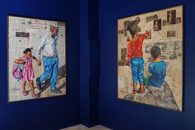 After the Covid-19 pandemic hit, he feels that people should confront his art from a new perspective and try to find happiness in these difficult times. Within some of his more recent work, more joyful feelings are present. For this new series, he explored the work on a medium and large scale, using newspapers related to articles on Covid-19.