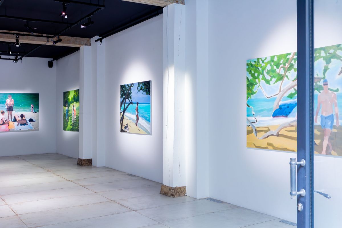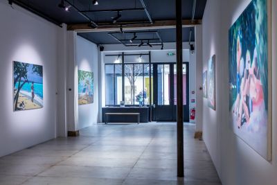 His recent paintings depict scenes of sharing and fulfillment, bodies of bathers exposed to the transparency of daylight, captured on the beach, at the water's edge, whose iridescent reflections retain the diffuse warmth of summer. His oils oscillate between lightness and gravity, between sharp contours and trembling surfaces. What matters is not so much representation as perception, this way of inhabiting the world through the gaze, of feeling it alive before it fades away. In this interval between appearance and erasure, LiFang explores the very duration of the visible, a space where clarity becomes memory, where painting, through successive afterimages, remembers.