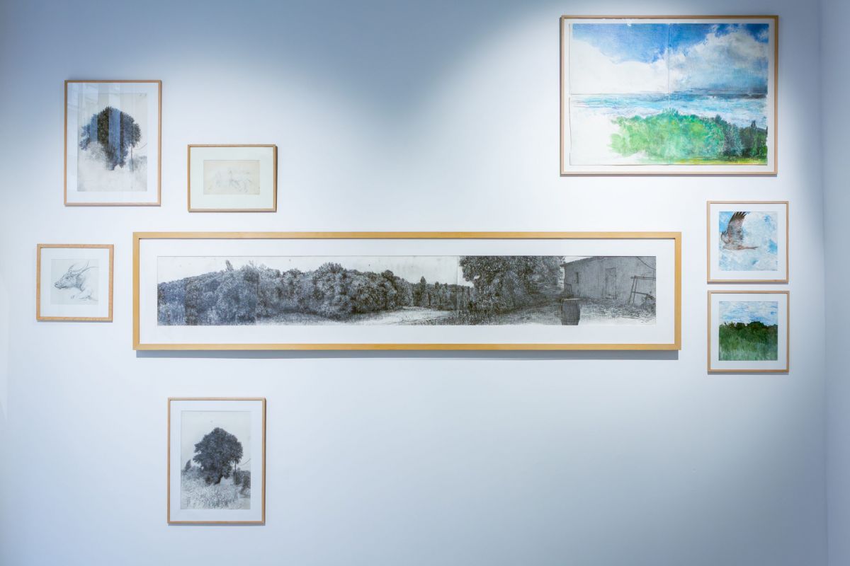The impassive “Song of the Earth” echoes a chant of renunciation, a tribute to a nature that is no longer what it once was but continues to resonate within us. This peaceful landscape surrenders itself to observation as well as threat: vineyards, crops, hunters, and territories inhospitable to fauna and flora lurk at the edge of the sheet of paper. And yet the rhythm of the earth is still there, immutable.