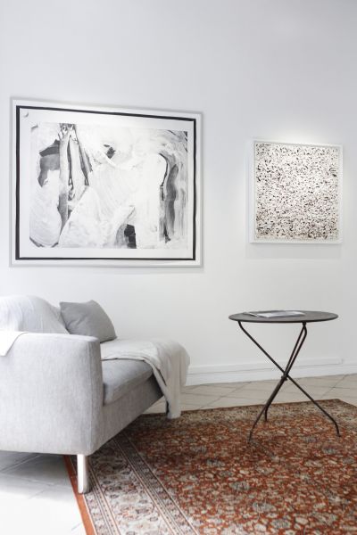 Here, rather than a curatorial homogeneity, the chosen works resonate with a singularity in the technique or mediums used by the artists, and a color palette mixing blacks and whites.