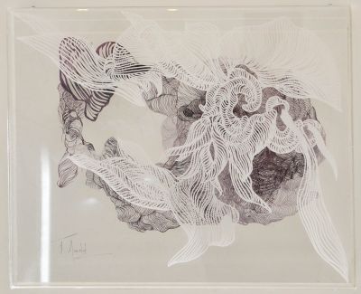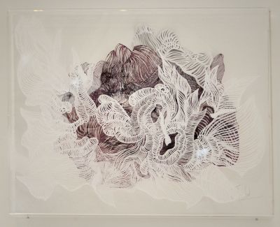 Flo Arnold creates for the Atelier an installation called "Vertige du Monde". This germination of organic flows in backlit paper, with sound system, comes to devour the space like a luxuriant vegetation. The architecture of the place disappears under a spotless waterfall. The visual artist with this artwork emphasizes on the fact that each of us, in order to forget the dizziness of the world all around, must live in a borderless sphere, without limit in the search for an inner peace.
