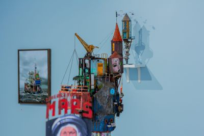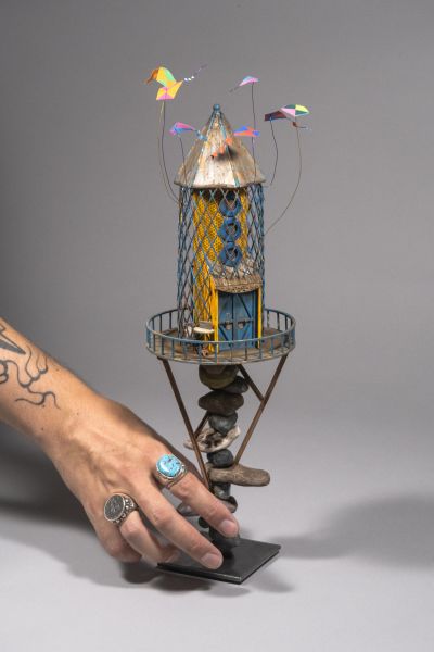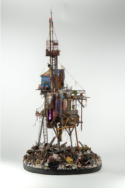 When discovering the works of Simon Laveuve, one is tempted to think back to Dubuffet's quip that art “is always where you least expect it”. After decades of contemporary art displaying the ostentatious nature of its monumental creations in art venues built to the (dis)measure of their ever more imposing frames, we are witnessing the emergence of a new aesthetic trend that turns this quest for gigantism on its head, extolling the virtues of the miniature, a taste for the minuscule, attention to detail, and the reverie of intimate spaces. Simon Laveuve is certainly at the forefront of this desire to rediscover a more human scale of creation, even if it's 1/35, in a closeness that recaptures the wonder of childhood. In concrete terms, the artist born in 1988 in the Paris suburbs creates miniature sculptures of chimerical architectures. From old graffiti-strewn sheds and ramshackle huts to overgrown turrets, trash-colored lighthouses, improbably levitating ships, dilapidated platforms, buoys and Lilliputian rafts, Simon Laveuve's model sculptures present an almost surreal inventory of improbable habitats that have nothing to envy the architectural follies of Richard Greaves or the Palais du Facteur Cheval.