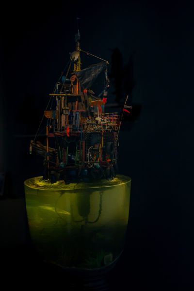 By offering a veritable manifesto of aesthetic savoir-vivre in the ruins of capitalism, the artist in no way subscribes to the collapsological nihilism of some. In fact, his visual universe has nothing to do with an anguished, gloomy dystopia, but rather bears witness to an act of resistance that appeals to the poetry of play and the virtues of the marvellous. From this point of view, the choice of miniature, far from signifying a kind of resigned closure, seems rather to be the royal road to the regeneration of our vanishing imaginations.