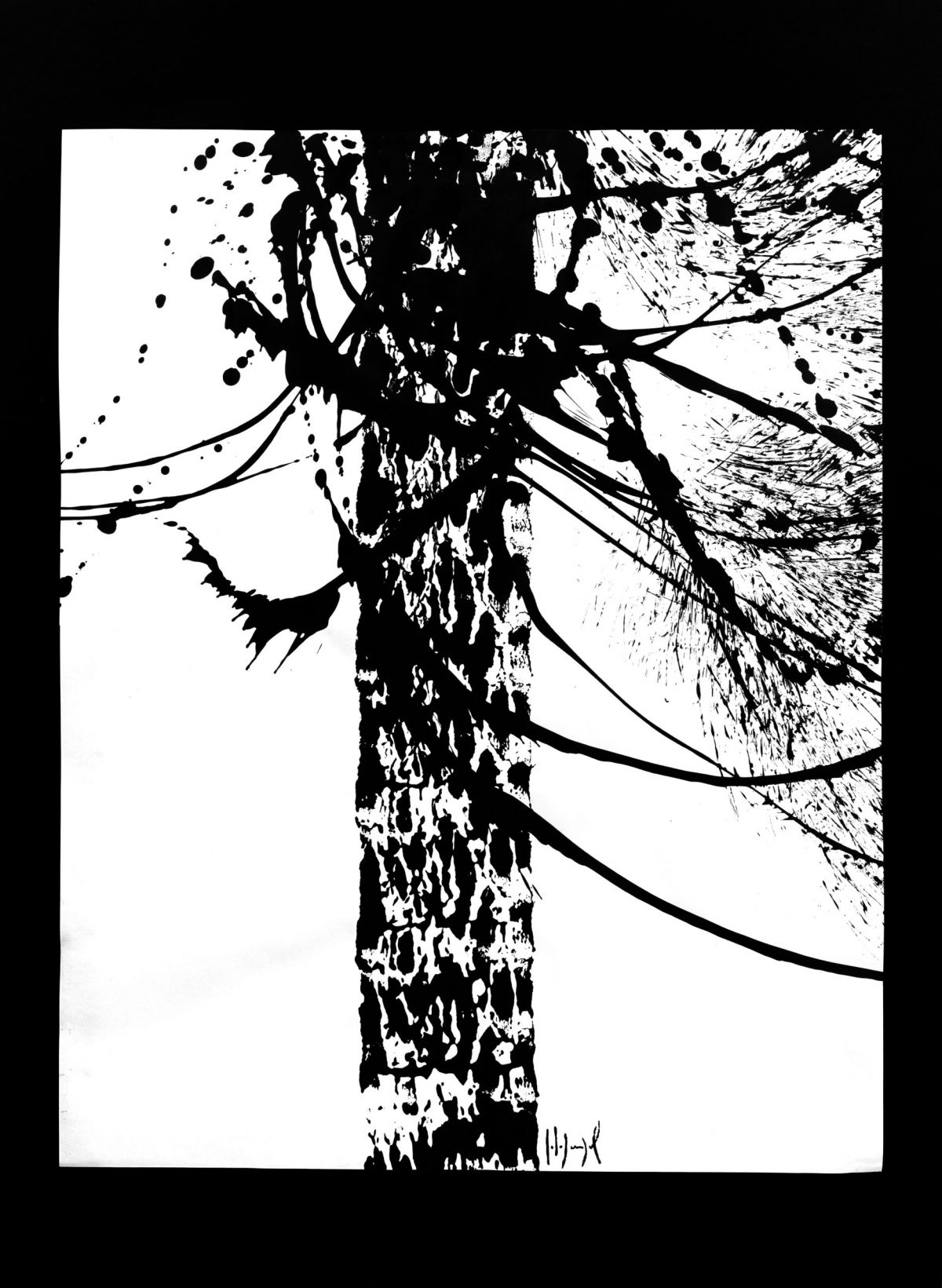 Ces chemins et ces sentiers métaphoriques, Pierre-Luc Poujol n’est évidemment pas le premier à les avoir empruntés, le romantisme allemand, en particulier, l’a précédé sur ces voies. Chacun, devant ces deux séries, Between the Lines et Lisières, donc, peut conduire son œil à son gré, avancer, zig-zaguer, bifurquer le long des trames, suivre veinules et ramilles, se laisser éblouir par une pluie poudreuse de jaunes Mais, toujours, le chemin mène à l’intérieur, dirait Novalis. Laissons toutefois là ce dernier, lui qui est le poète des mines et des anfractuosités terrestres. Revenons à l’arbre, revenons à notre enfant imaginaire du premier paragraphe qui grimpait sur son arbre. Et reformulons : le chemin mène vers le haut.