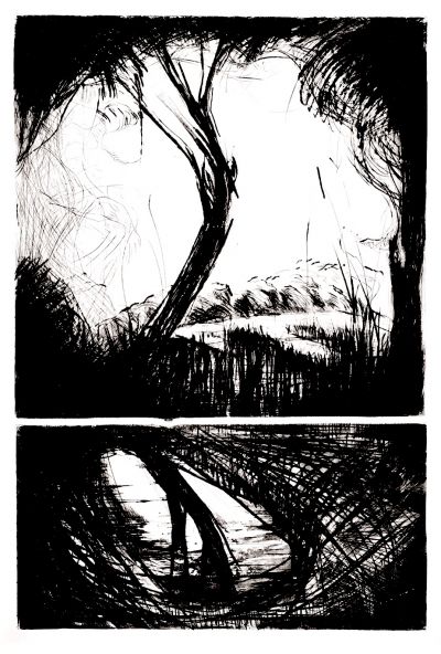 La réunion des onze artistes présentés permet pour la première fois au regardeur d’embrasser dans une même vision la singulière et frémissante identité artistique de la galerie, faite de matières mouvantes et de rugissements intimes. Esthétique de l’engagement plus que de la contemplation devant les germinations de Lydie Arickx et les masses torturées d’Olivier de Sagazan, auscultation féroce au cœur des sous-bois cendrés et des sculptures écorchées de Cedric le Corf, danse fantomatique au rythme des corps anonymes de Christophe Miralles, affleurement d’une cartographie intérieure dans les traits spontanés et verdoyants de Joël Person, proliférations et délicatesses végétales chez Florence Arnold et Dominique Lacloche, visions telluriques et fantastiques chez Paul de Pignol et Johan Van Mullem, expressivité veineuse et troublée chez Arghaël, étrange occultation de paysages désirés chez le seul photographe du groupe, Jean-Claude Wouters.