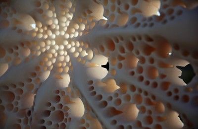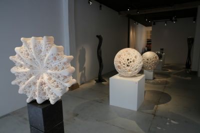 Universe : le mot s’impose lorsque l’on aborde l’œuvre de Matthias Contzen. Car le geste de l’artiste s’origine dans un désir profond de percer la nature des formes. Planet Bean, 2009, Planet Alpha, 2010, Planet Lucky, 2015, sphères de marbre évidées traversées de lumière, et Star 1200, 2015, présentées dans l’espace du Haut Marais, secrètent le principe créateur de l’univers : « mes planètes surgissent dans l’infiniment grand, quelques fragments de seconde après le Big Bang. Pourtant leurs formes m’ont été initialement inspirées par celles de microalgues, les diatomées centriques, venues sur terre il y a plus de 150 millions d’années », remarque l’artiste.