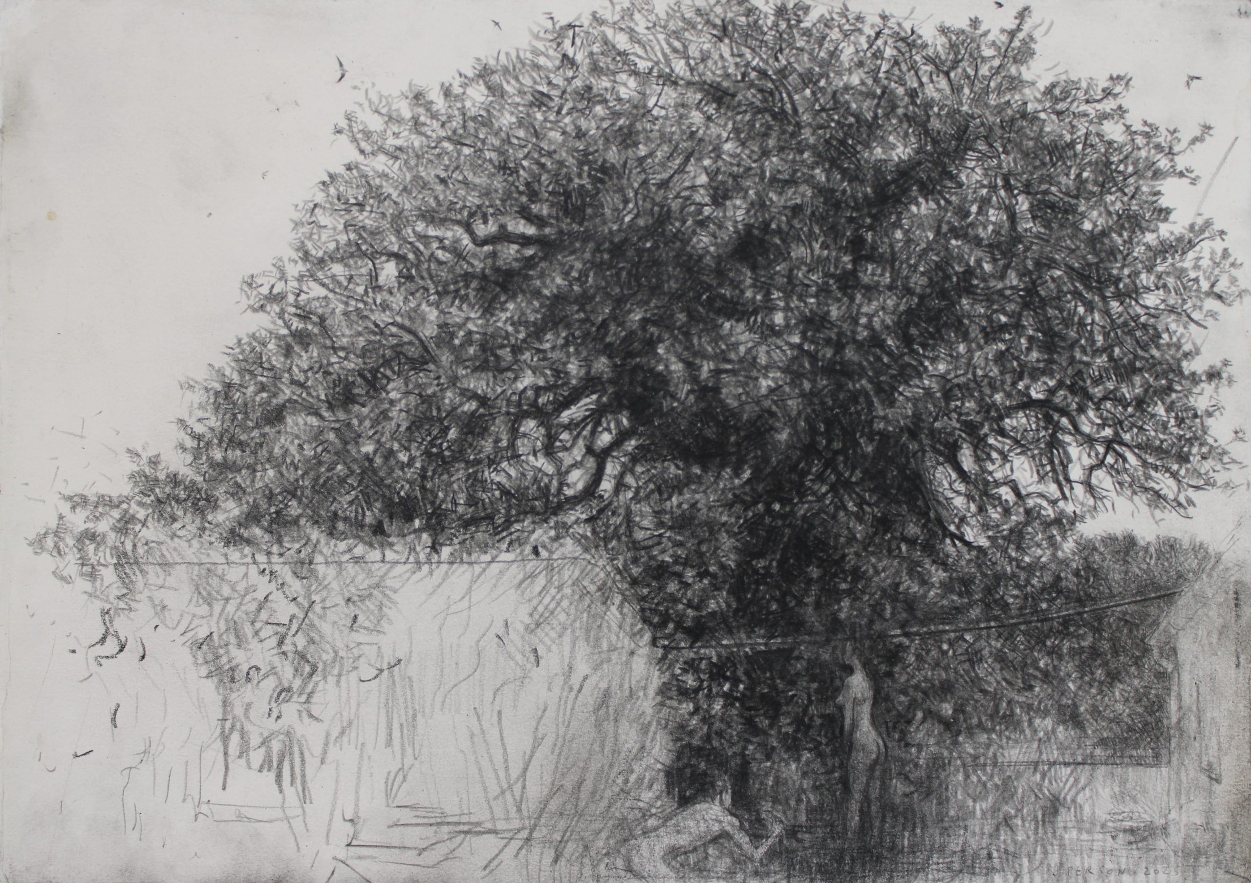 Dans ce contexte anxiogène, l’artiste se repositionne sur ce qui a été « perdu » : c’est en rappelant à la mémoire son enfance qu’elle s’imprime en lui avec plus de précision. Les nombreux portraits, dont une sélection est présentée ici, ont parsemé la carrière du dessinateur comme autant de souvenirs immortalisés sur le papier. Sans jamais effacer la pure solitude, c’est aussi la confrontation de l’artiste à un autre « soi » dans une tension offerte à l’éternité. Le paradis perdu, c’est ce que Joël Person retrouve par le dessin, qui lui permet de retrouver les émotions premières, intuitives, et libérées de tout procédé.