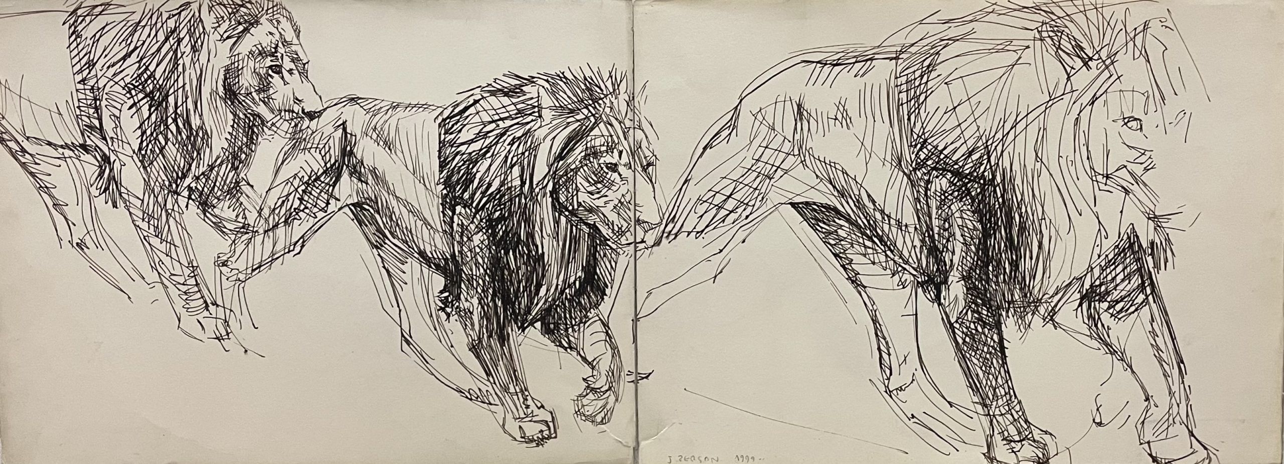 Ce sont d’abord les « Chevaux de l’Apocalypse », grande cavalcade de plus de 9 mètres de long qui ouvrent la réflexion dessinée de Joël Person. Ses galops se lisent comme une partition monumentale et évoquent, bien sûr, l’expiation religieuse par leur titre. Mais encore une fois rien n’est littéral chez Joël Person et par le cadrage, l’artiste met l’accent sur les chevaux plutôt que sur les « cavaliers », véritable leitmotiv de son travail. Au texte d’origine, c’est ici la puissance du cheval qui vient rythmer la recherche du dessinateur.