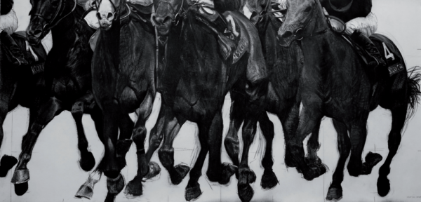 Les chevaux de l’Apocalypse, 2020, Fusain sur toile _ charcoal on canvas, 930 x 150 cm _ © Émilie Mathé Nicolas 3 copie