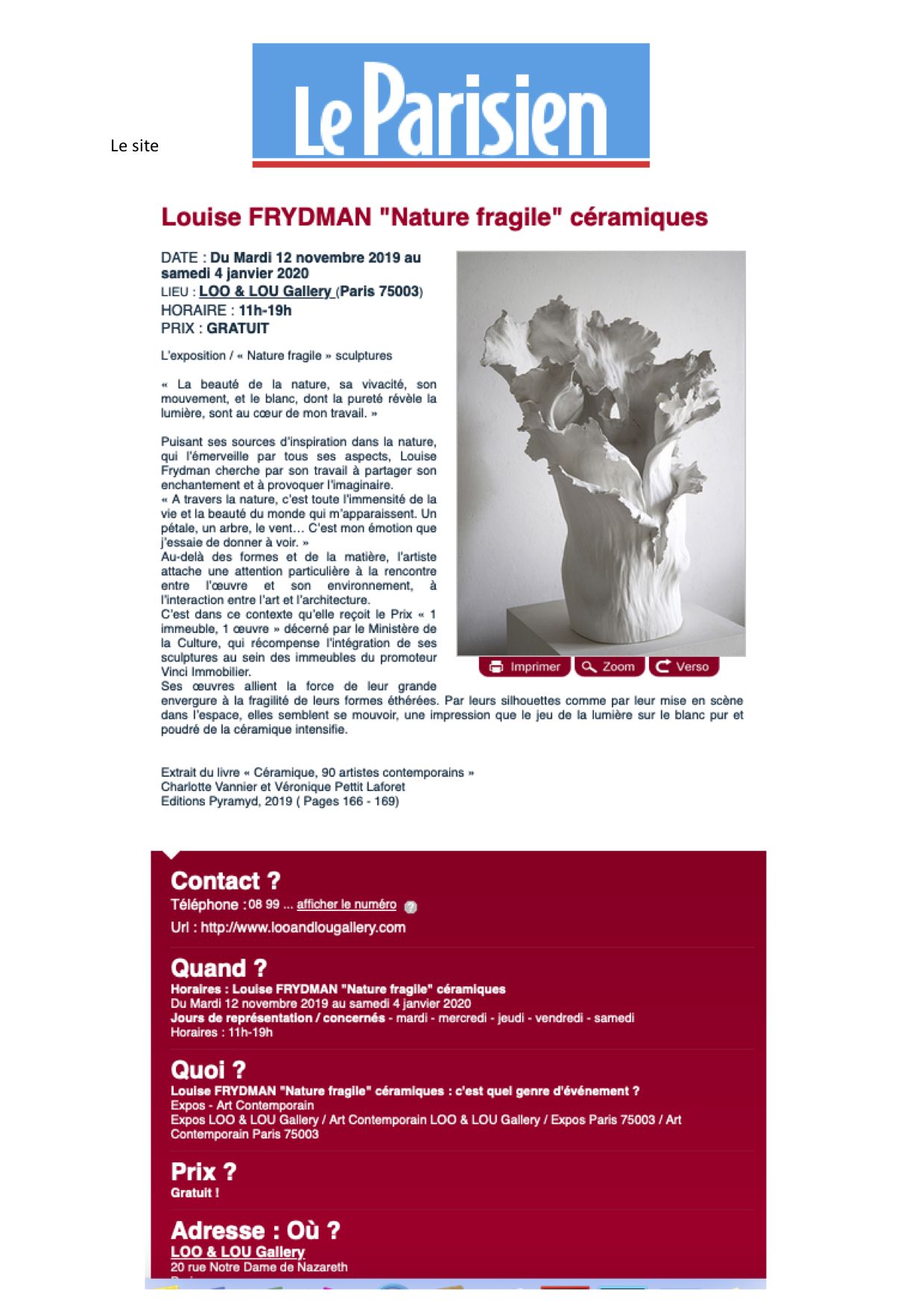 LYDIE ARICKX, « Gravité », Le Parisien, September 2017