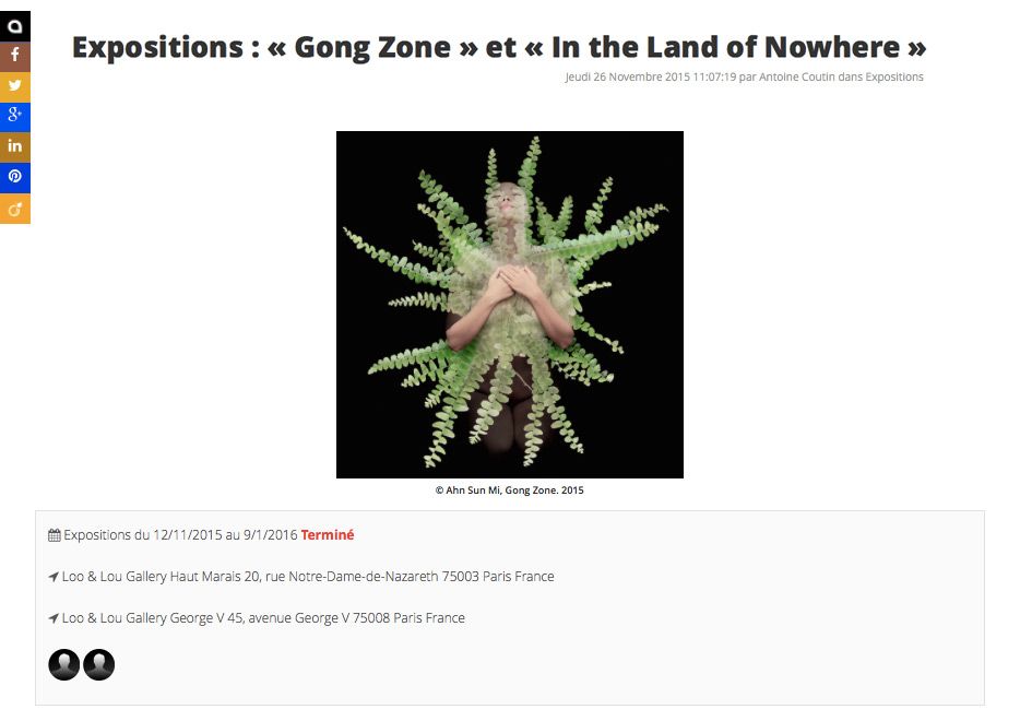 AHN SUN MI, « Gong Zone » / KAYIP, « In the land of nowhere », L’Officiel des Galeries & Musées, January 2016