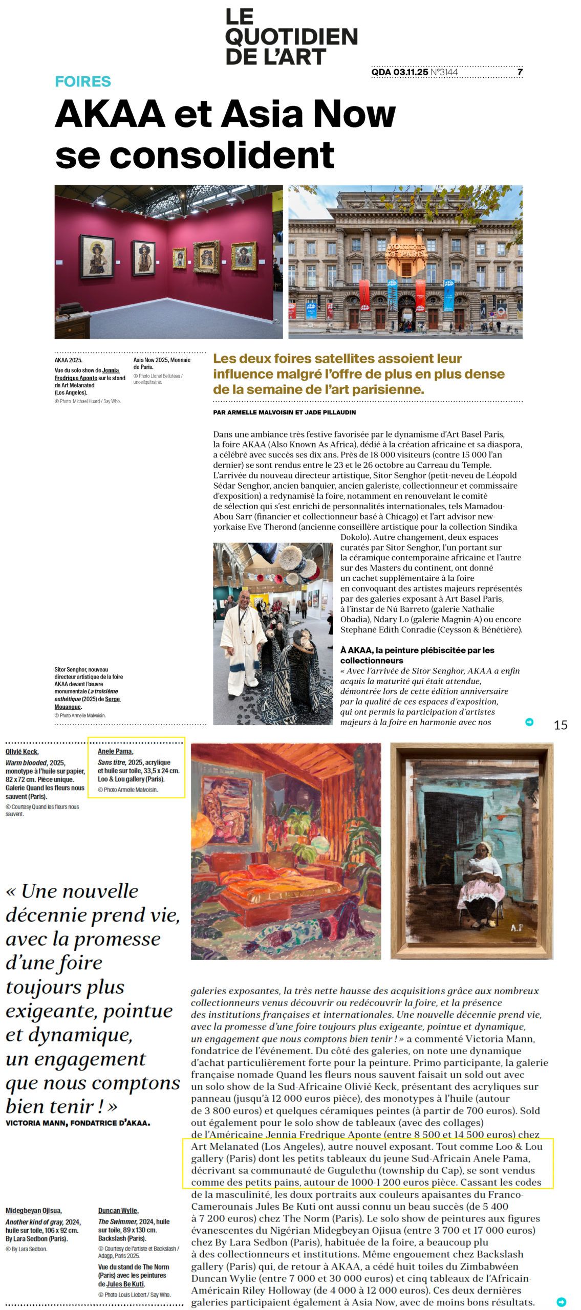 ANELE PAMA, AKAA, LE QUOTIDIEN DE L'ART, NOVEMBRE 2025