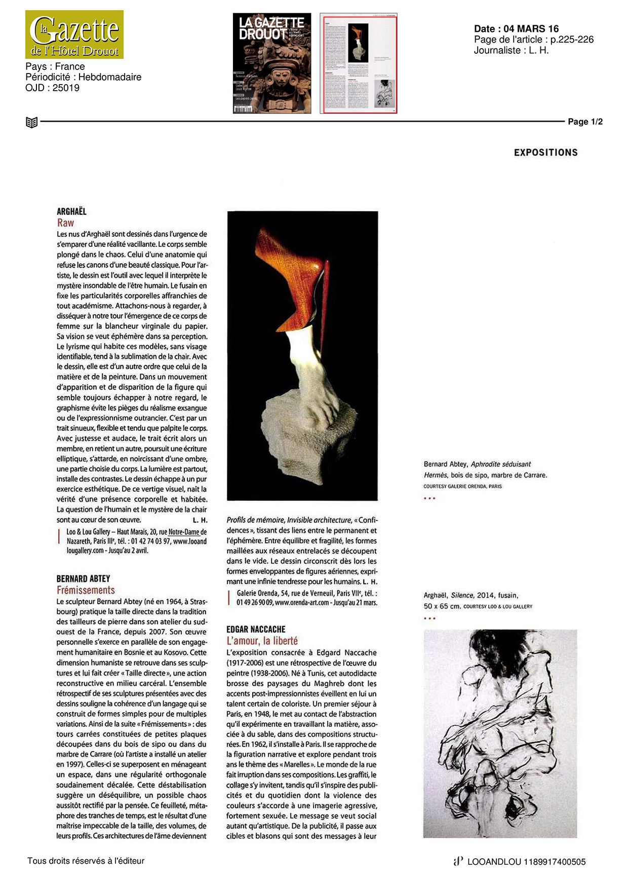 ARGHAËL, « Raw », La Gazette Drouot, March 2016