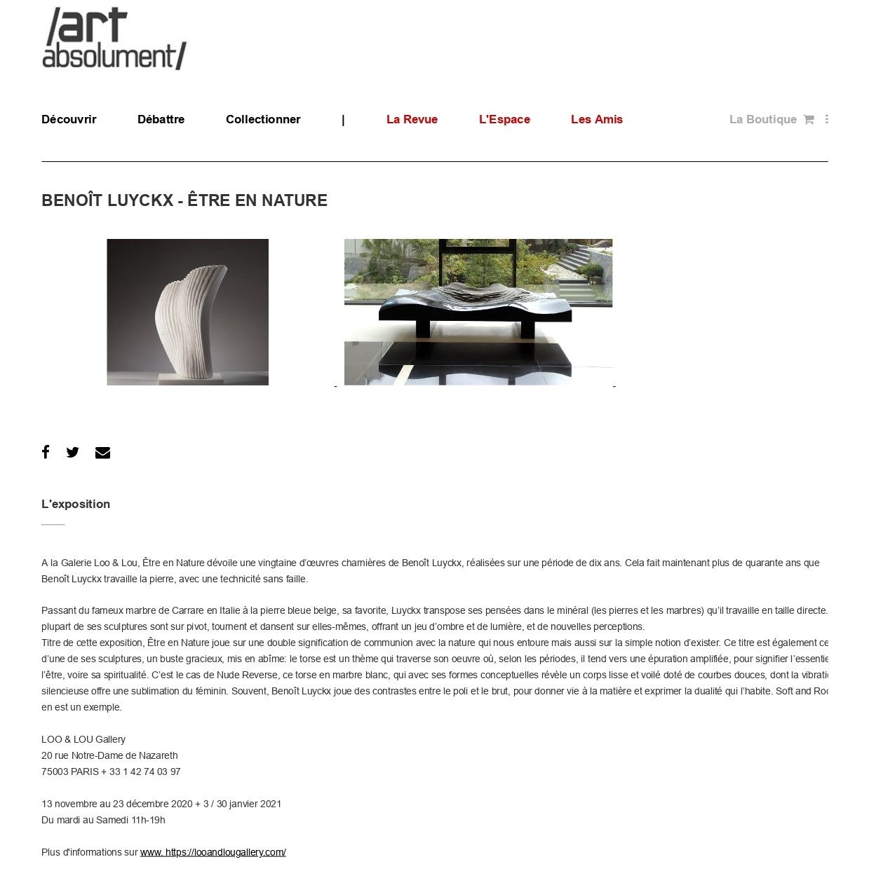 Art Absolument : Benoît Luyckx - Être en Nature, October 2020