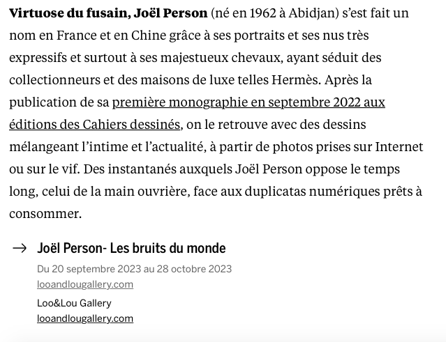 JOËL PERSON, "LES BRUITS DU MONDE", BEAUX-ARTS, OCTOBER 2023