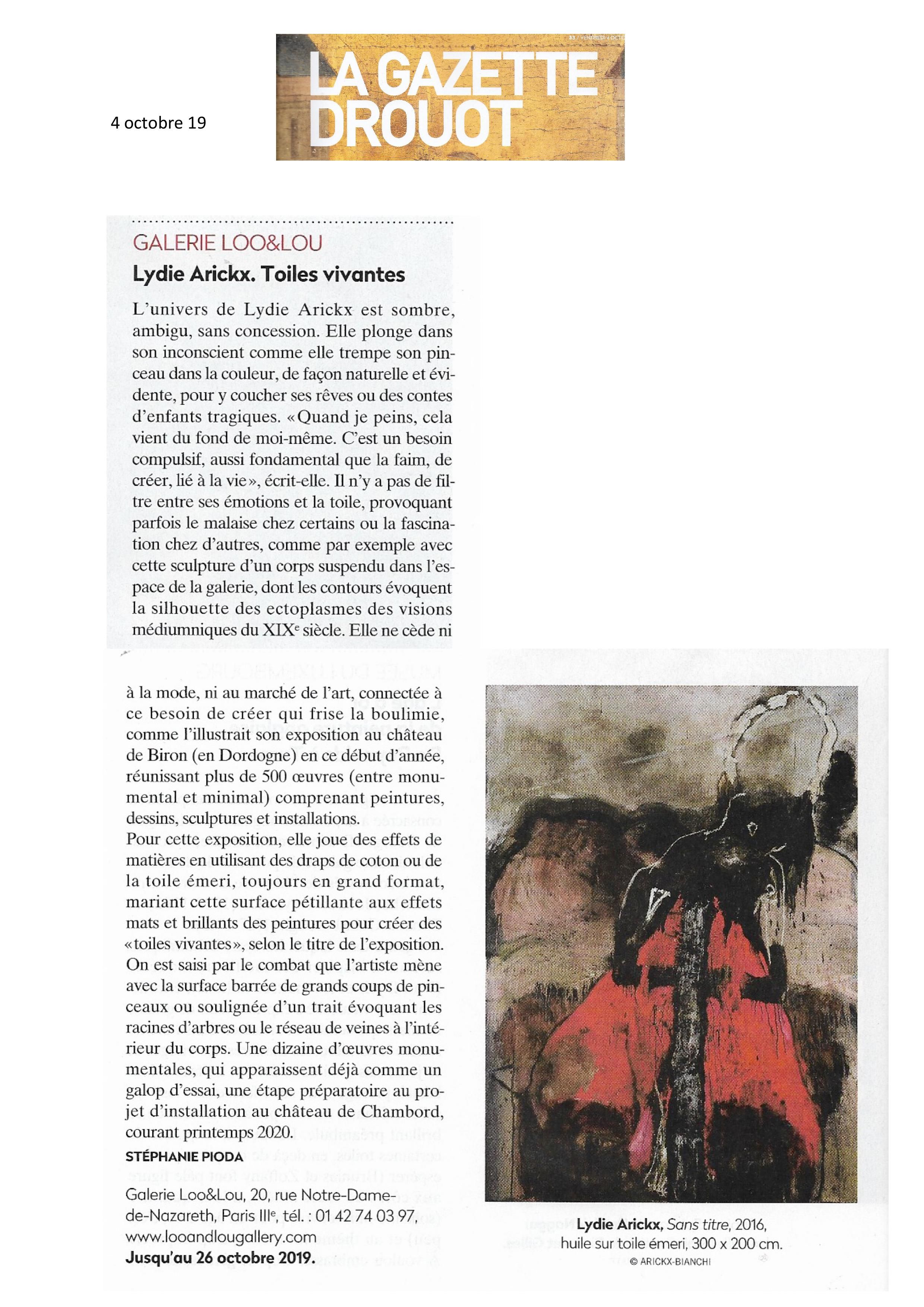 LYDIE ARICKX, « Gravité », 20 Minutes, October 2017