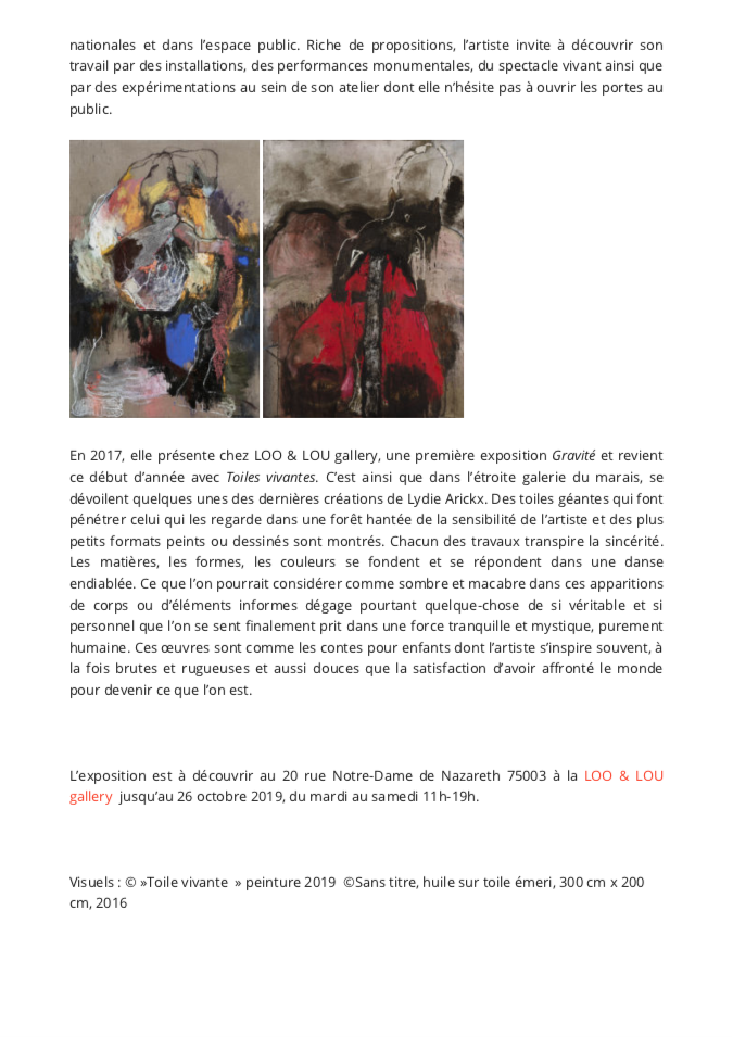 LYDIE ARICKX, « Gravité », Paris Art, September 2017