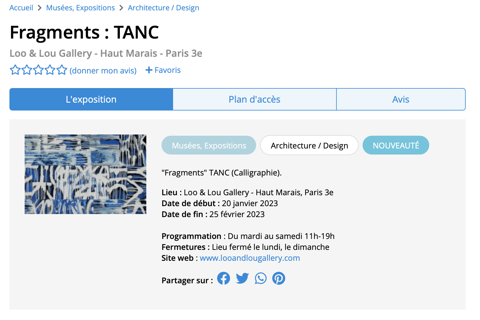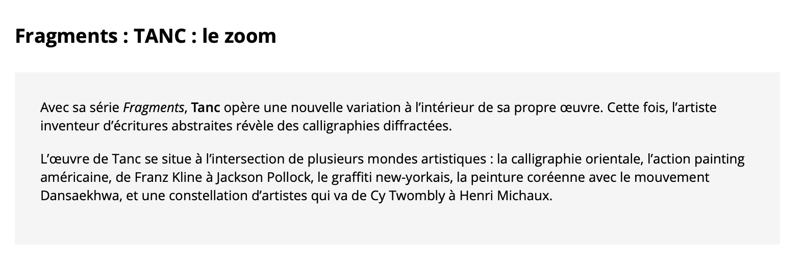 TANC, "FRAGMENTS", L'OFFICIEL DES SPECTCALES, JANUARY 2023