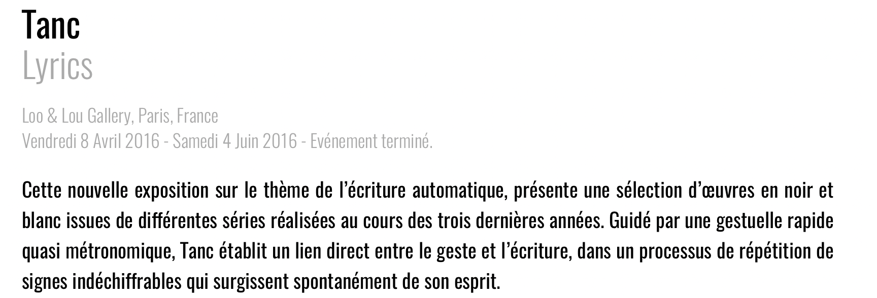 TANC, « Lyrics », Artlimited, April 2016