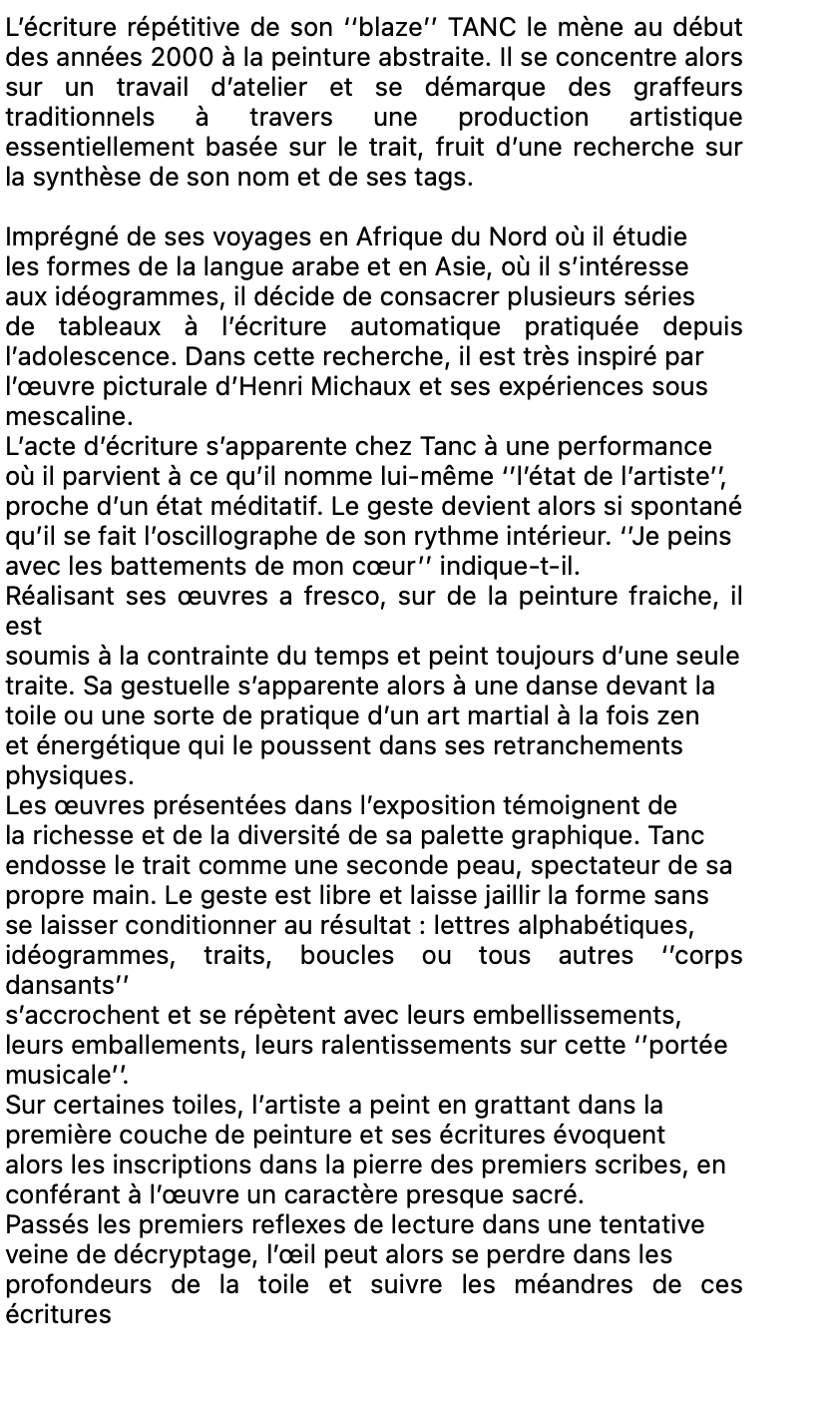 TANC, “FRAGMENTS, ART HEBDO MÉDIAS, JANUARY 2023