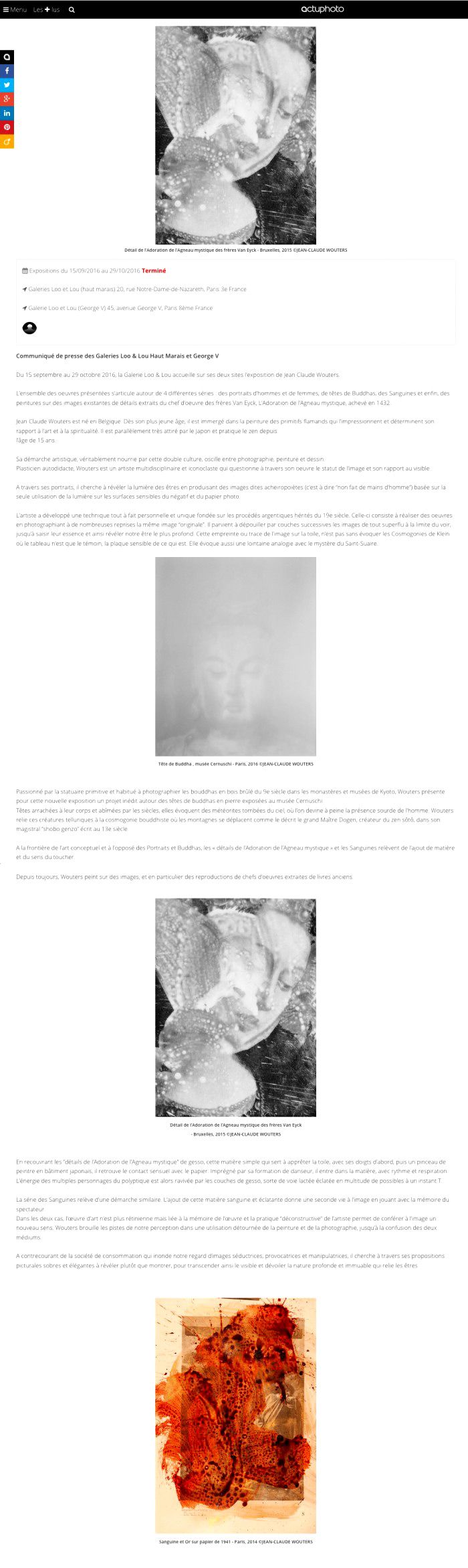 JEAN CLAUDE WOUTERS, « Portraits et buddahs, l’agneau mistyque » , Actuphoto, Septembre 2016
