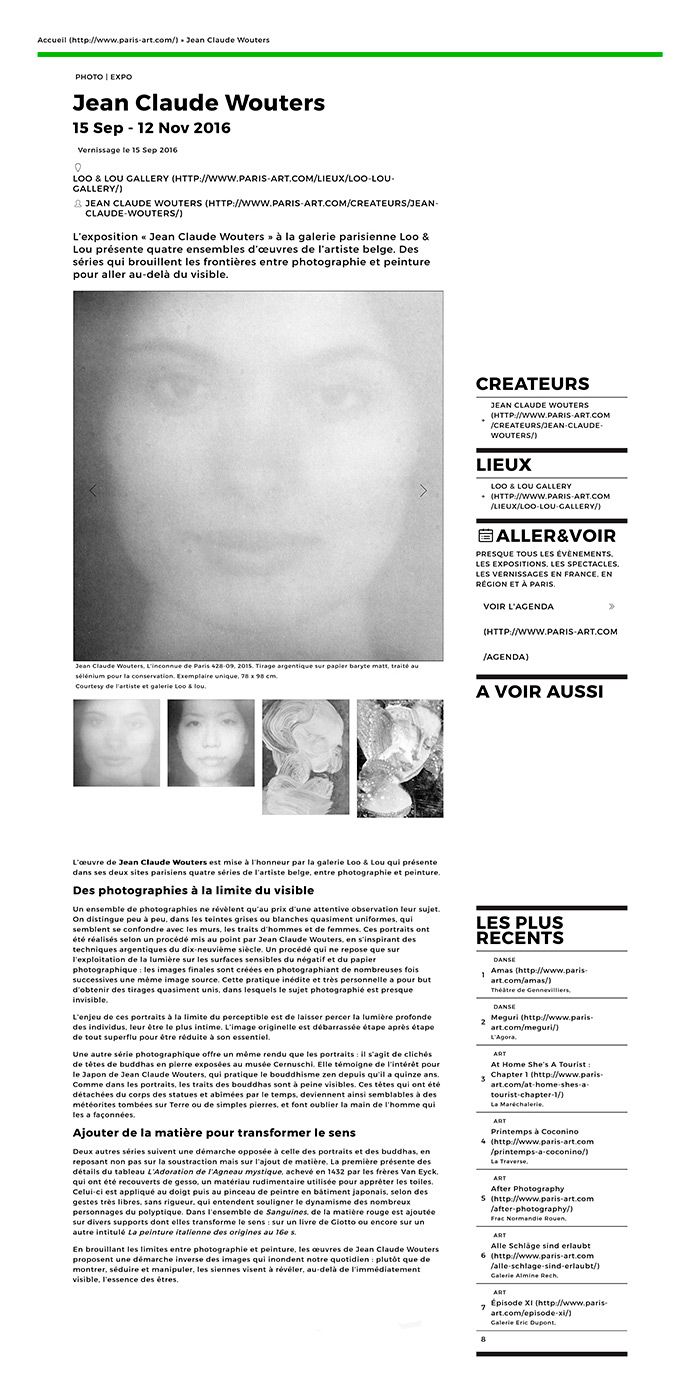 JEAN CLAUDE WOUTERS, « Portraits et buddahs, l’agneau mistyque » , ParisArt, Octobre 2016