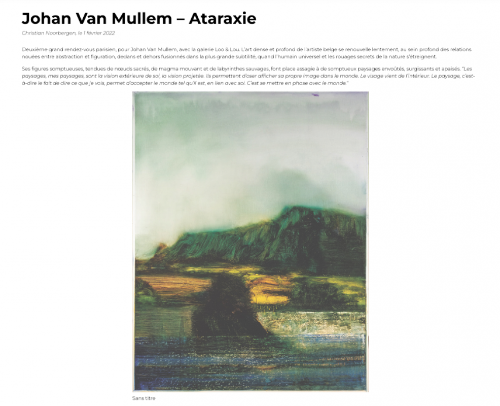 "Johan Van Mullem - Ataraxie", On en parle dans ARALYA.FR, FÉVRIER 2022