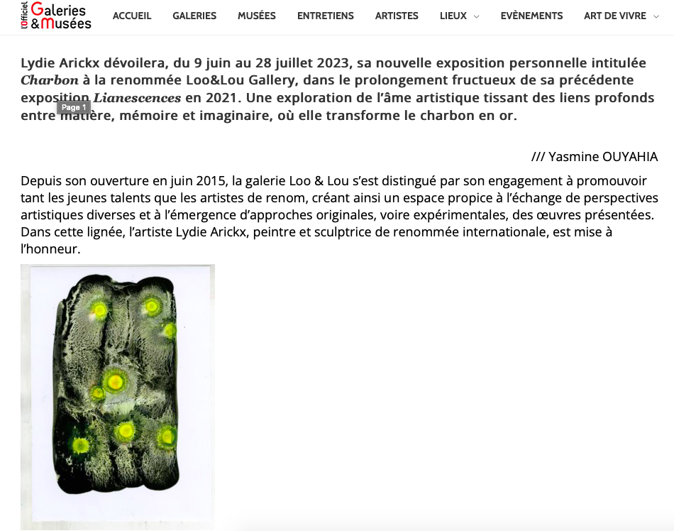 LYDIE ARICKX, "CHARBON", L'OFFICIEL DES GALERIES ET MUSÉES, JUIN 2023